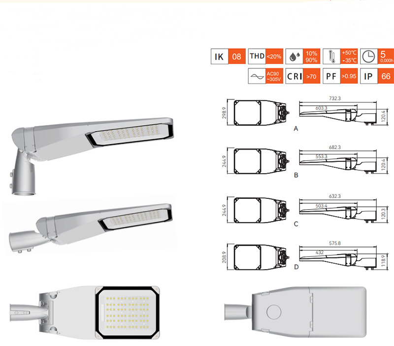 5 വർഷത്തെ വാറന്റി 50w 80w 100w 150w 240w ലെഡ് സ്ട്രീറ്റ് ലൈറ്റ്, IP66 വാട്ടർപ്രൂഫ് 3000k 6000k സിറ്റി ലെഡ് റോഡ് ലൈറ്റിംഗ്
