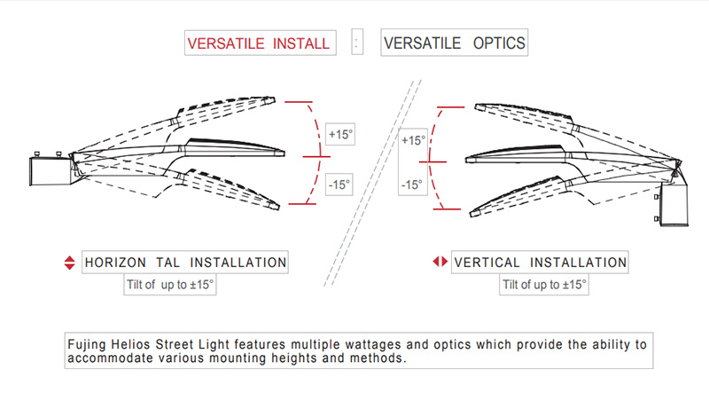 - തിരശ്ചീനമായും ലംബമായും ഇൻസ്റ്റാൾ ചെയ്യാൻ കഴിയും, കൂടാതെ ക്രമീകരിക്കാവുന്ന കോൺ ± 15° ആണ്.