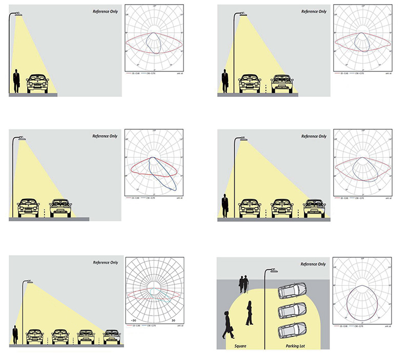 - Ⅰ/Ⅱ/Ⅲ/Ⅳ/Ⅴ തരം ലൈറ്റ് വിതരണത്തിന് റോഡ് ലൈറ്റിംഗിന്റെ വ്യത്യസ്ത ആവശ്യകതകൾ നിറവേറ്റാൻ കഴിയും.